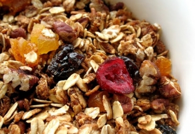 Puede ayudar a controlar nuestro peso: Uno de los grandes beneficios de la granola es que nos puede ayudar a perder peso. La manera más sencilla de aprovechar esto, es consumir granola como parte de nuestro desayuno. Como antes fue señalado, la granola se encuentra llena de fibra, un compuesto que nos ayuda a suprimir el exceso de hambre. Básicamente, cuando se consume granola, sentiremos nuestro organismo más satisfecho, especialmente si se consume la granola en compañía de otros cereales, miel o frutas. Muchos han logrado conseguir beneficios a la hora de perder peso al simplemente llevar una barra de granola al trabajo, en donde en vez de consumir dulces cuando se tiene hambre, se consumirá la barra de granola acompañada con una taza de té. También se puede destacar que la granola es baja en colesterol y sodio, por lo que nos ayudara a perder peso si se incluye de manera habitual en nuestra dieta.