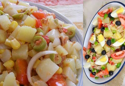 ¿Conocías el pastel de atún? En formato pastel, tienes que hervir patatas y amasarlas para crear una masa que puedes aderezar con sal, pimienta y limón. En una bandeja pones una primera capa de esta masa de patatas, y encima añades atún, maíz dulce, guisantes, huevo duro y cebolla; aderezandolo también con limón, pimienta y sal; encima de esto añades una segunda capa de masa de patatas. Este es un plato delicioso que además se come frío y es muy fresco y nutritivo. Se llama causa peruana.
