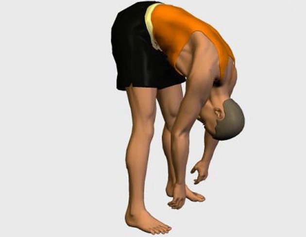 Mientras controlas tu respiración, inhalando suavemente, lleva tu cuerpo hacia adelante, haciendo tocar los dedos de tus manos con el suelo. Así relajarás la espalda y sentirás cómo tus piernas van trabajando su elasticidad. Mantente en esta posición por 4 segundos (después ve aumentando el tiempo), exhala y levántate, para seguir realizando el ejercicio 10 veces.