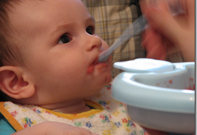 Los primeros alimentos deben ser fáciles de ingerir y deben ser recomendados por su pediatra. Generalmente se opta por darle una primera papilla consistente en un puré de papá, zapallo y zanahoria, preparados con muy poca sal. Posteriormente se incorporan la carne de pollo que puede ser hervida a manera de caldo junto con el zapallo para luego hacer una papilla que el bebé pueda digerir.