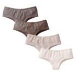 Pasamos ahora a la tienda online de ropa premamá Verbaudet. Aquí encontramos un conjunto de braguita y sujetador de un estilo más casual, ideal para el uso cotidiano. El Sujetador de lactancia algodón stretch con aros (4) tiene copas desabrochables rápidamente que te serán muy útiles para cuando amamantes a tu bebé. Sus tirantes son ajustables y tiene doble corchete detrás. Hay tres diseños: malva con motivos, marrón claro liso o a rayas gris-crudo (11.94 euros). El conjunto se completa con el shorty de algodón strech para premamá (5) (9.95 euros)