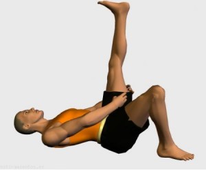Túmbate con una pierna flexionada, levanta la otra estirada y estiramos bajando tu pierna hacia la cabeza.