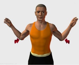 Eleva tus manos y colocalos en una angulo de 90 grados, mueve tu posición, colocando los codos hacia atras.