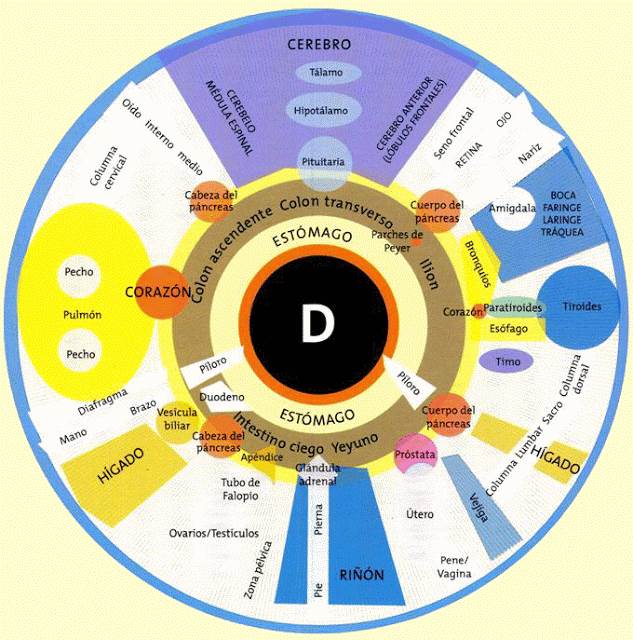 - Ya la derecha se encuentran el hígado, la tiroides y los músculos dorsales.