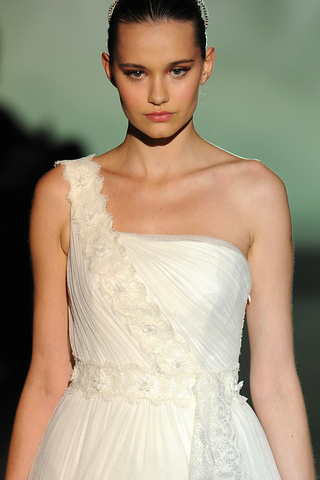 Peiró presentó una colección espectacular en lo que se refiere a vestidos para novia 2013, pero lo cierto es que su propuesta de maquillaje convence poco.
