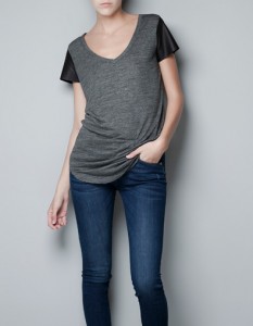 - También podéis combinar los jeans de Zara con todo tipo de camisetas. La firma siempre apuesta por muchos diseños con estampado diverso, aunque quizás las que mejor os queden sean aquellas que resultan más básicas y en tonos como el blanco, o como vemos en la foto de arriba en tonos grisáceos, con mangas en color negro.