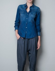 - Camisa tejana y pantalón de estilo “bombacho” que además cuenta con una goma en la cintura, ideal para mujeres embarazadas.