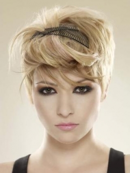 Para las que llevéis el pelo corto, podéis apostar por un peinado como el de la imágen superior, donde vemos como la modelo luce cierto efecto “despeinado” y que además complementa con una diadema. Podéis sustituir esta por un pequeño tocado, pero dejando algunos mechones sueltos para tener un aire muy moderno en el día de vuestra boda.