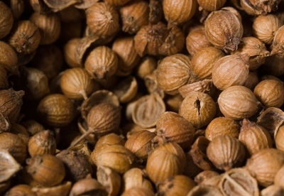 - Las semillas del cilantro, que en realidad son sus frutos desecados, se suelen utilizar molidas o aplastadas en múltiples preparaciones de la gastronomía internacional. Una de sus aplicaciones más conocidas es como uno de los principales ingredientes del curry indio; pero también se usan en Alemania para condimentar salchichas y en la preparación de conservas en vinagre (como, por ejemplo, los pepinillos o las cebolletas), en Rusia y en países centroeuropeos está presente en el pan de centeno y también las encontramos en platos de la cocina etíope y árabe. En Oriente Medio se suelen moler las semillas para aromatizar el café.