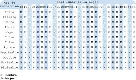 - Tenemos que decir que utilizar esta tabla es relativamente sencillo ya que esta cruza solo dos datos para determinar el sexo del bebé y son; la edad lunar de la madre y el mes de concepción.